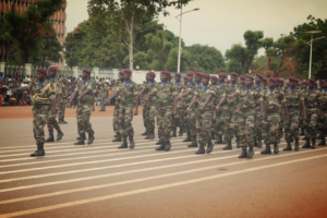 Seules quelques centaines de personnes, triées sur le volet et rigoureusement fouillées, ont été autorisées à pénétrer sur l’avenue Barthélémy Boganda, où se déroulait le défilé en présence du président Touadéra, entouré d’un triple rideau de sécurité composé de nombreux soldats centrafricains, de casques bleus rwandais de l’ONU, de membres des forces spéciales fournies par Kigali et de paramilitaires russes, tous lourdement armés.